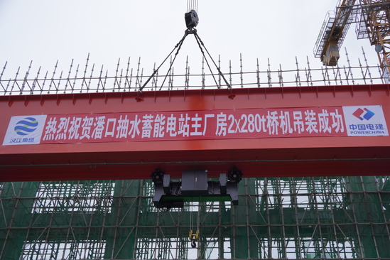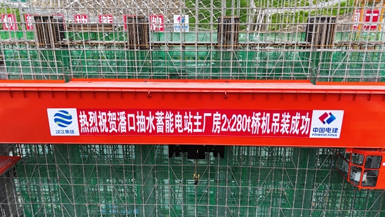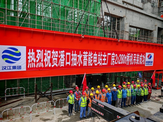 湖北潘口抽水蓄能電站是國家抽水蓄能中長期發展規劃項目和湖北省“十四五”規劃重點實施項目。電站總裝機容量29.8萬千瓦,裝設2臺裝機容量14.9萬千瓦的可逆式水泵水輪機組,是目前國內在建的水頭變幅最大、轉輪直徑最大的超低水頭抽水蓄能項目。此次吊裝的280噸橋機作為主廠房核心起重設備,總重量達241噸,跨度27.5米,配備兩臺280噸主鉤及兩臺16噸電動葫蘆,承擔著電站機組安裝期間的重型設備吊裝任務,其安裝精度與安全穩定性直接關系到電站整體建設進度與長期運行安全。