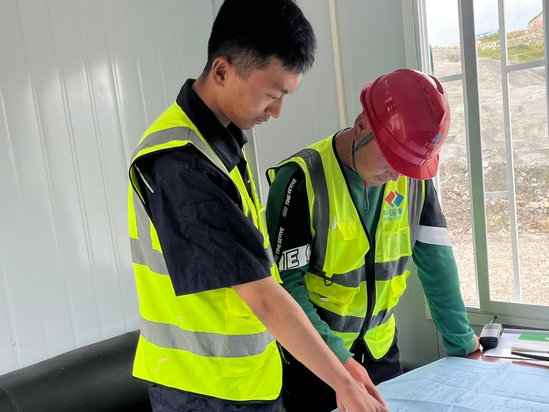 可是,工地不是課堂,不跑起來追上大家的腳步,誰會一直等自己慢慢成長呢。于是,崔福興成了工地上最執著的身影:晨曦微露,他已提前半小時蹲在現場,手指拂過冰冷的鋼鐵部件,默默記下操作要點;夜幕低垂,辦公室的燈光下,他仍伏在攤開的施工圖上,指尖在等高線間反復描摹,將施工工序烙印于心;但凡遇到疑難,無論技術瓶頸還是現場協調,他總追在師傅、同事身后,打破砂鍋問到底。他向設備‘磨’,向圖紙‘磨’,向老前輩‘磨’。