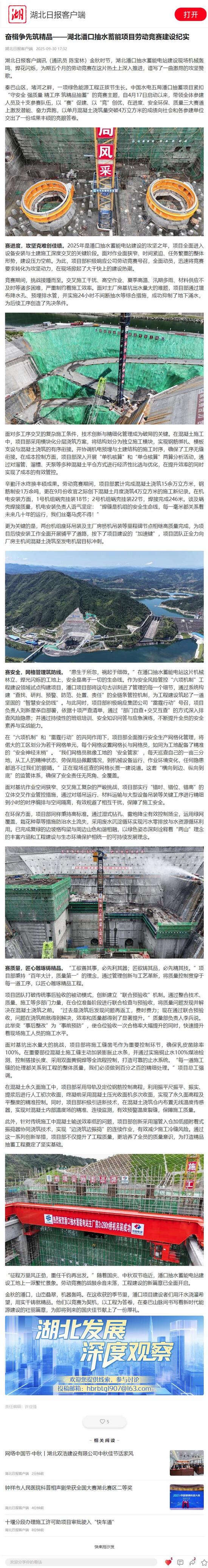 湖北日報客戶端訊(通訊員 陳寶林)金秋時節,湖北潘口抽水蓄能電站建設現場機械轟鳴、焊花閃爍,為期五個月的勞動競賽在這片熱土上深入推進,譜寫了一曲激昂的攻堅贊歌。