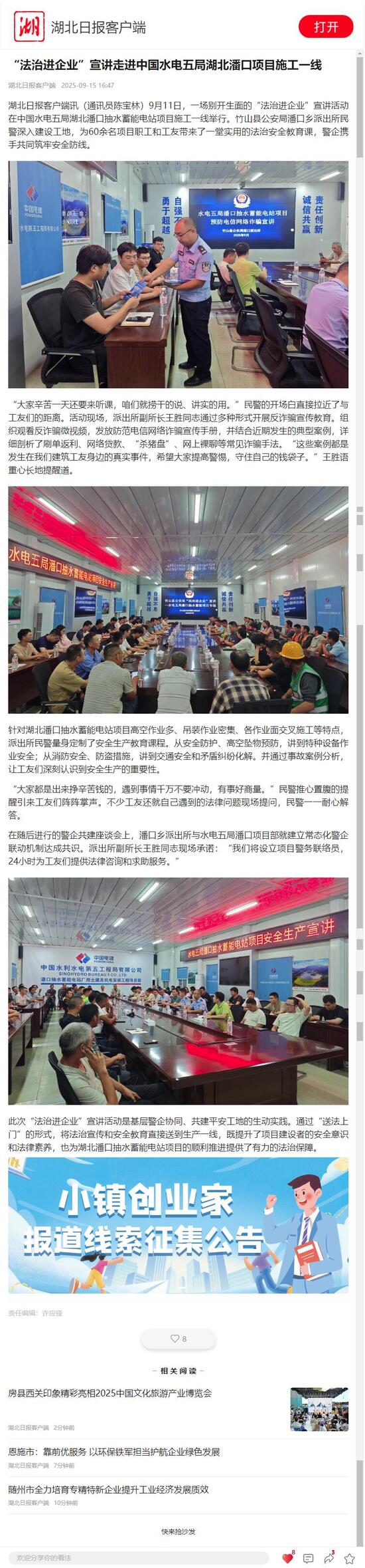 此次“法治進企業(yè)”宣講活動是基層警企協(xié)同、共建平安工地的生動實踐。通過“送法上門”的形式,將法治宣傳和安全教育直接送到生產(chǎn)一線,既提升了項目建設(shè)者的安全意識和法律素養(yǎng),也為湖北潘口抽水蓄能電站項目的順利推進提供了有力的法治保障。