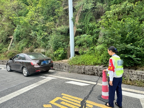 為保障早高峰交通順暢,蘇家艷第一時間在故障車輛后方擺放警示錐,引導后續車輛分流至其他車道,避免交通擁堵;同時,她聯系就近汽修廠,詳細說明車輛故障情況與具體位置。