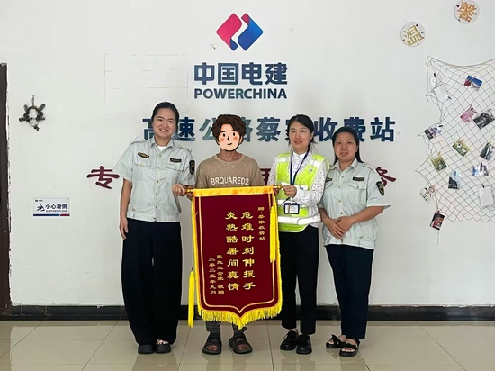 9月19日,中電建江津至習水高速運營管理部蔡家收費站收到綠通車司機張師傅專程送來的錦旗,錦旗上有“危難時刻伸援手 炎熱酷暑見真情”的字樣,既是對收費站工作人員此前幫助的感謝,也是雙方之間的暖心情誼的見證。