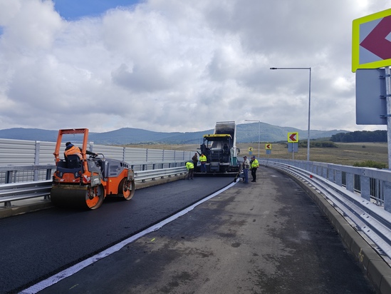 10月7日,在監(jiān)理、當(dāng)?shù)毓こ處煛⒅蟹絾T工共同參與下,羅馬尼亞繞城公路項(xiàng)目正式開始了橋梁第二層瀝青混凝土攤鋪工作。